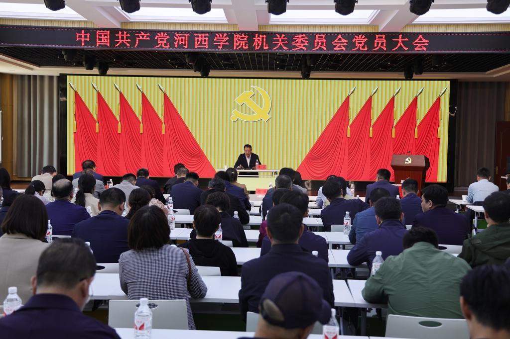 大会在雄壮的国歌声中拉开帷幕。机关党委书记代表上一届机关党委向党员大会作题为《以高质量党建护航高质量发展,为早日建成特色鲜明的河西大学贡献力量》的工作报告。报告全面回顾和总结了机关党委五年来在政治建设、基层党建、党风廉政建设等方面取得的成绩和经验,总结了存在的主要问题,提出了今后的努力方向。