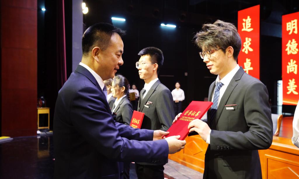 党委书记梁兆光为荣获2023年度“国家奖学金”“国家励志奖学金”的学生代表颁奖