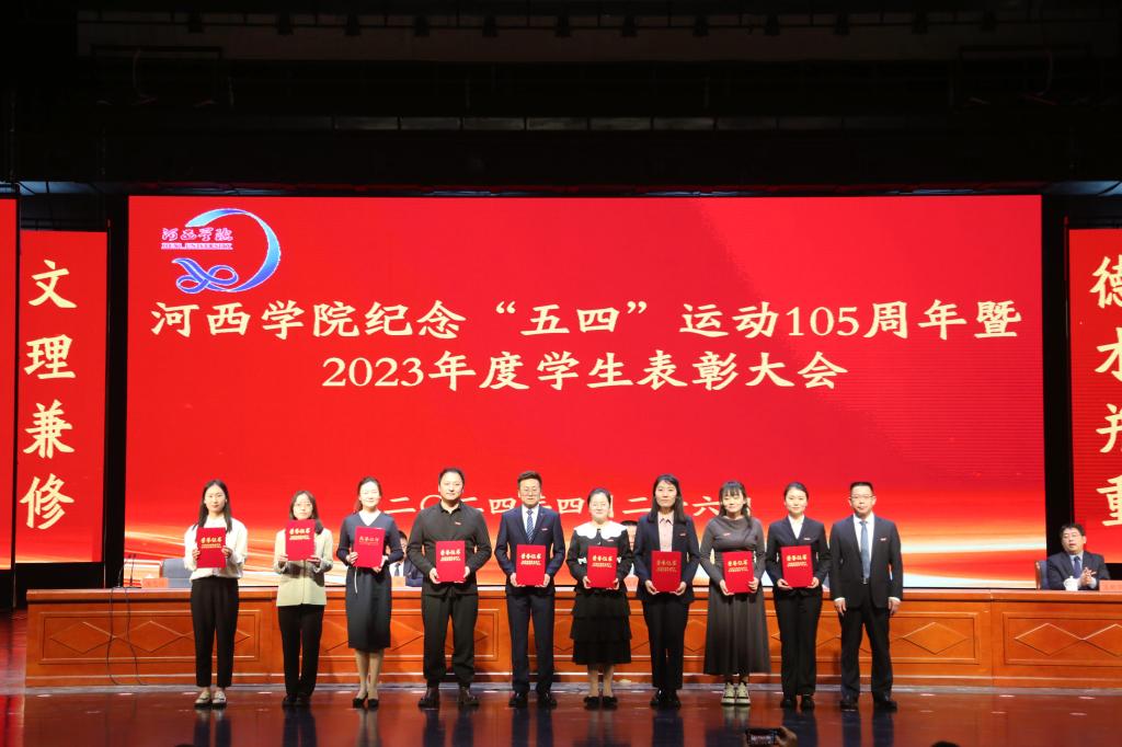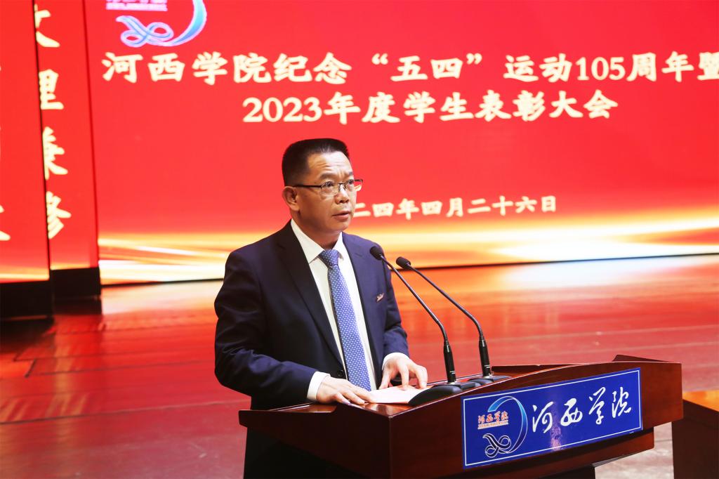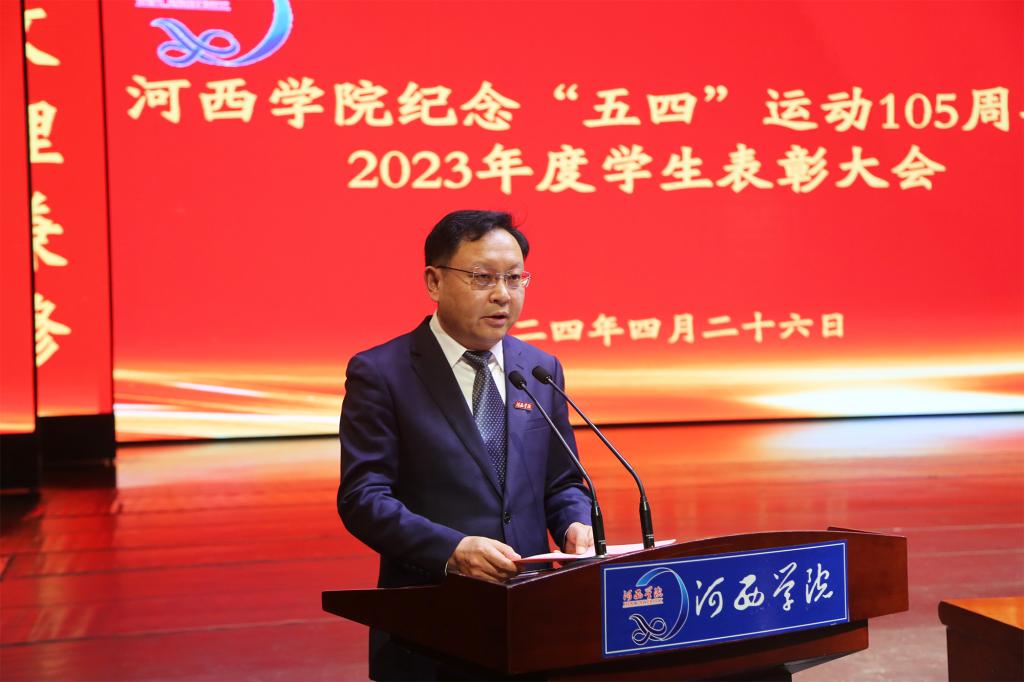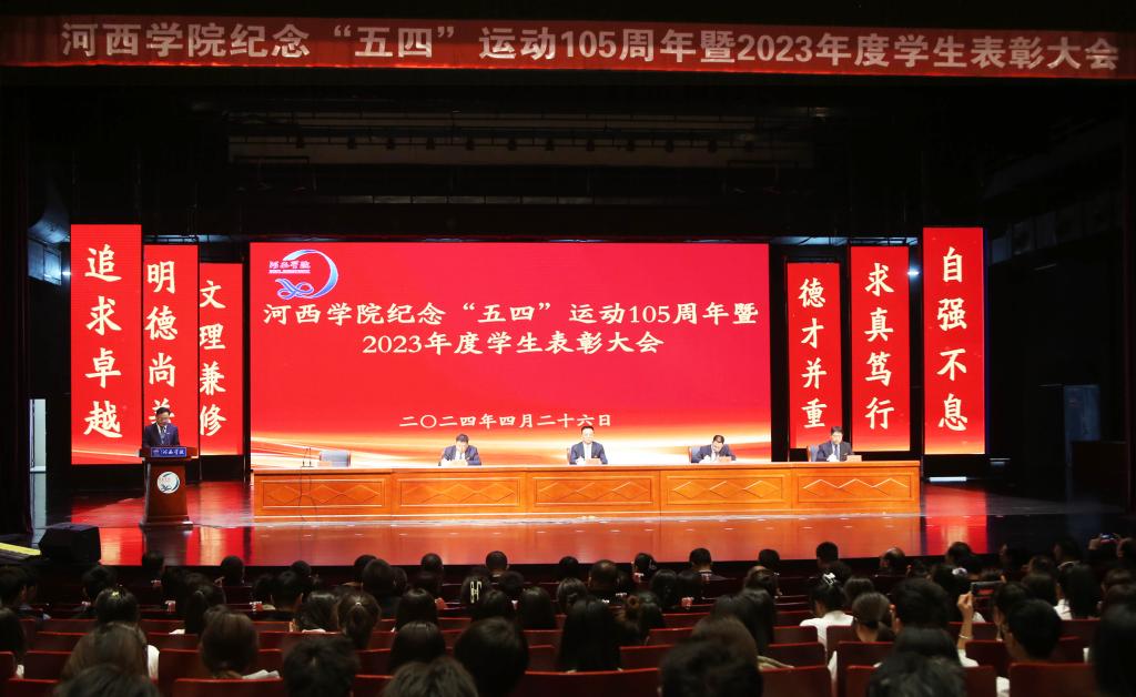 4月26日,河西学院纪念五四运动105周年暨2023年度学生表彰大会在河西讲堂报告厅召开。党委书记梁兆光,党委副书记、校长周勇,党委常委、副校长赵柱、王新华,学工委成员单位负责人,二级学院分管学生工作领导、团委书记、副书记、获奖学生代表和团员青年代表800余人参加会议。大会由党委常委、副校长唐志强主持。