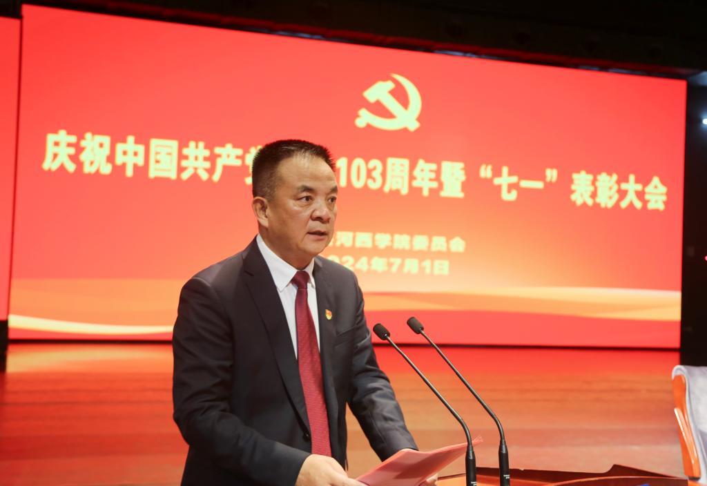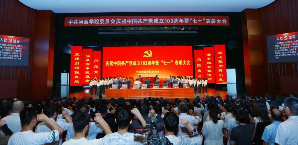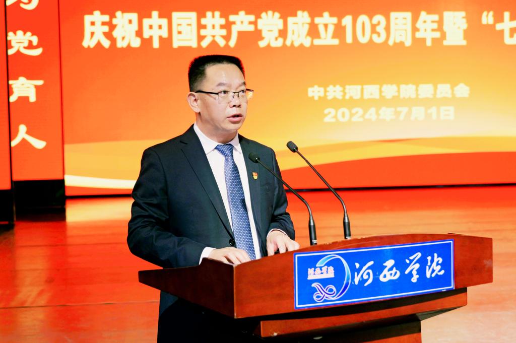 为迎接中国共产党成立103周年,弘扬伟大建党精神,激励全校广大党员牢记初心使命、勇于担当作为,全面实现党代会确定的奋斗目标,早日建成河西大学,7月1日下午,河西学院举行庆祝中国共产党成立103周年暨“七一”表彰大会,共同庆祝党的生日。党委书记梁兆光出席并讲话。党委副书记、校长周勇主持。