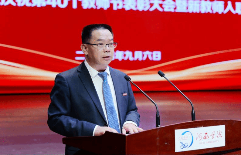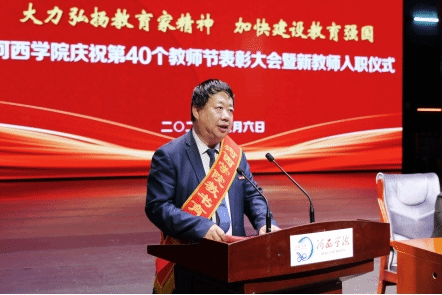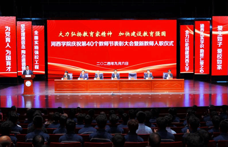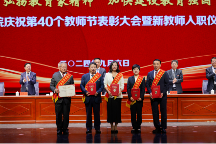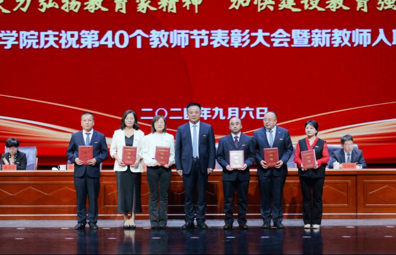 在第40个教师节来临之际,9月6日下午,学校召开“大力弘扬教育家精神 加快建设教育强国”第40个教师节表彰大会暨新教师入职仪式。学校领导梁兆光、高荣、王新华、唐志强,党委常委杜明奎、褚建霞出席,党委副书记、校长周勇主持会议。